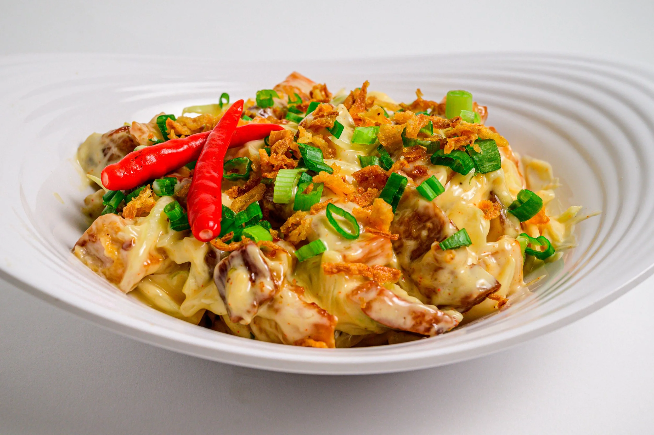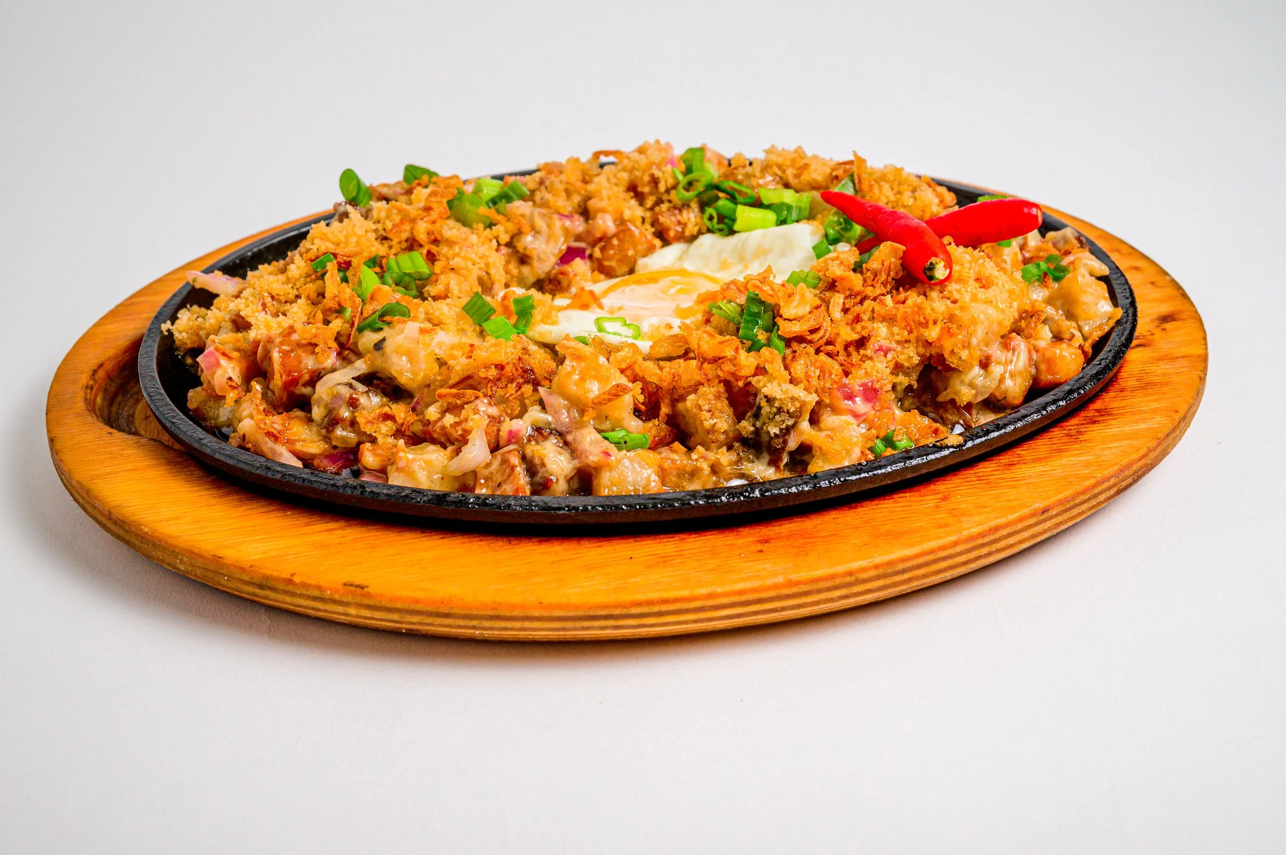 Filipino spicy dish, your choice of crispy pork belly or chicken, onion, lemon with our special dressing.